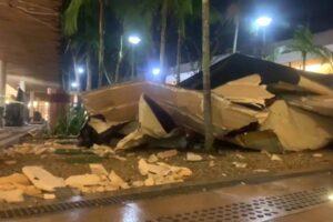 Ventos de até 90 km/h destelham shopping e provocam estragos no litoral de SP