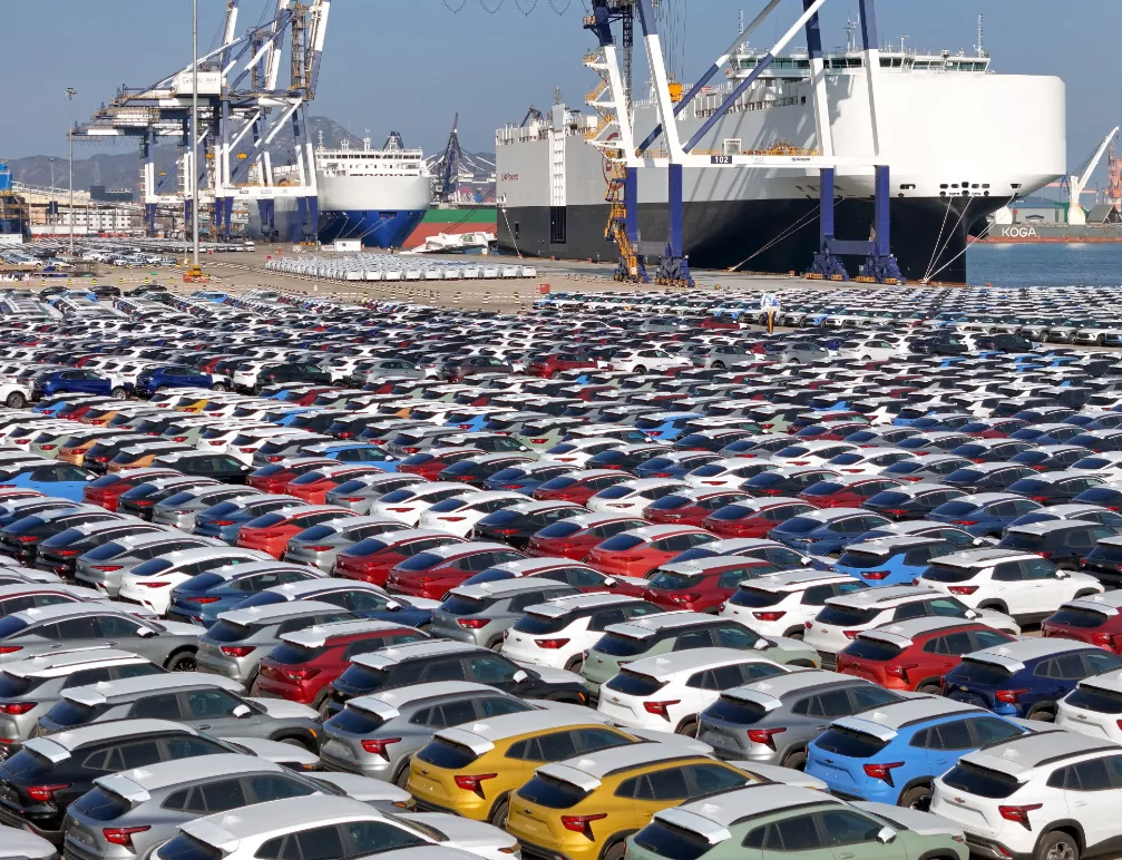 Carros para exportação em terminal do porto de Yantai, na província de Shandong, na China (10/01/2024 China Daily via REUTERS)