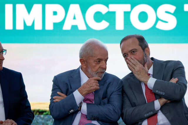 O presidente Lula e o ministro de Minas e Energia, Alexandre Silveira, conversam durante cerimônia de assinatura de MP-1212; governo prometeu reduzir a conta de luz, mas, na prática, elevou a tarifa – 09.04.24 – Pedro Ladeira/Folhapress