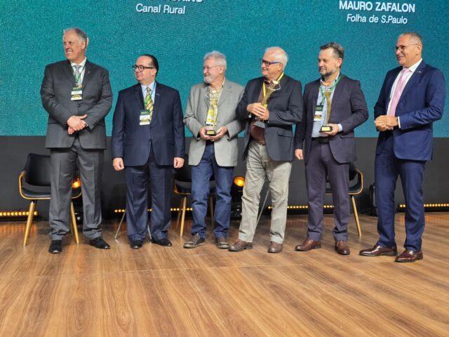 Receberam os agradecimentos por trabalharem ativamente para valorizar cada vez mais o agronegócio brasileiro, o produtor rural, e receberam um troféu