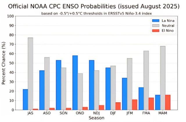 NOAA eleva para 56% a chance de La Niña durante a primavera no Brasil, com risco de impactos no clima e na agricultura.