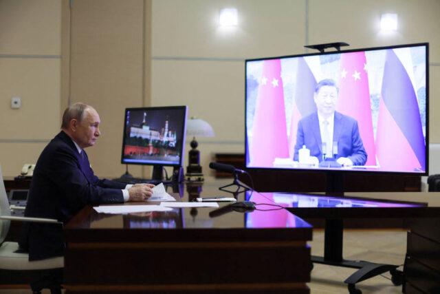 Putin participa de videoconferência com Xi em sua residência em Novo-Ogariovo, perto de Moscou – Gavriil Grigorov/Pool/Reuters