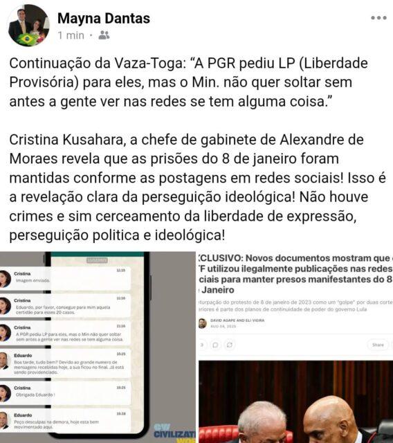 Agora, os ARQUIVOS DE 8 DE JANEIRO mostram que Moraes criou uma força-tarefa secreta e ilegal de inteligência que usou postagens em redes sociais para justificar a prisão de manifestantes pacíficos.